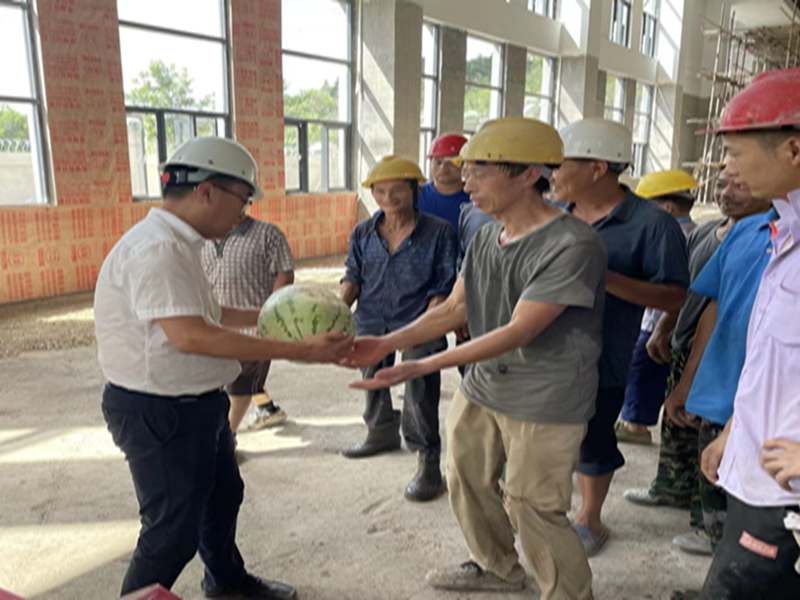黨委副書記、總經(jīng)理、支部指導(dǎo)員江中同志為工人送上防暑用品