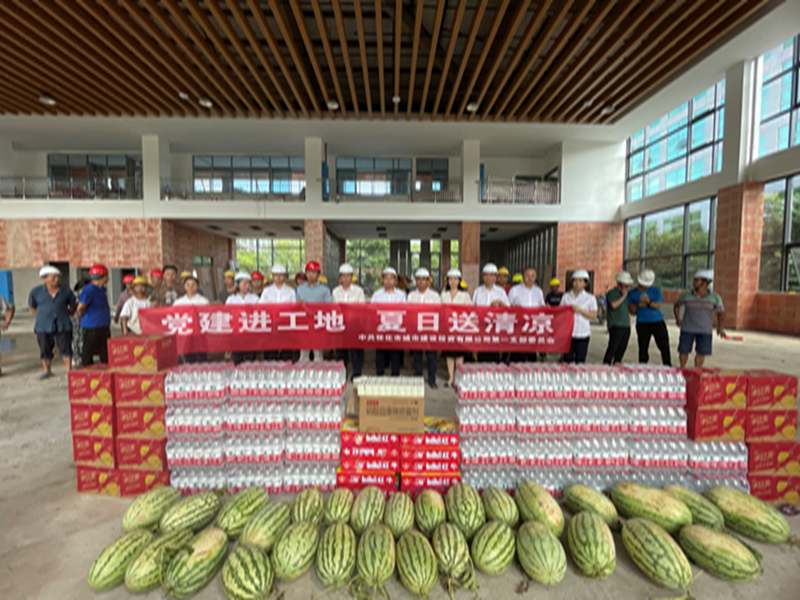 為切實關(guān)愛關(guān)懷施工一線人員, 7月21日下午,中共懷化市城市建設(shè)投資有限公司第一支部委員會組織黨員干部深入在建項目施工現(xiàn)場開展“黨建進工地 夏日送清涼”主題黨日活動。給在高溫下工作的一線建筑工人們送去了礦泉水、西瓜、紅牛、藿香正氣水等防暑降溫物資。