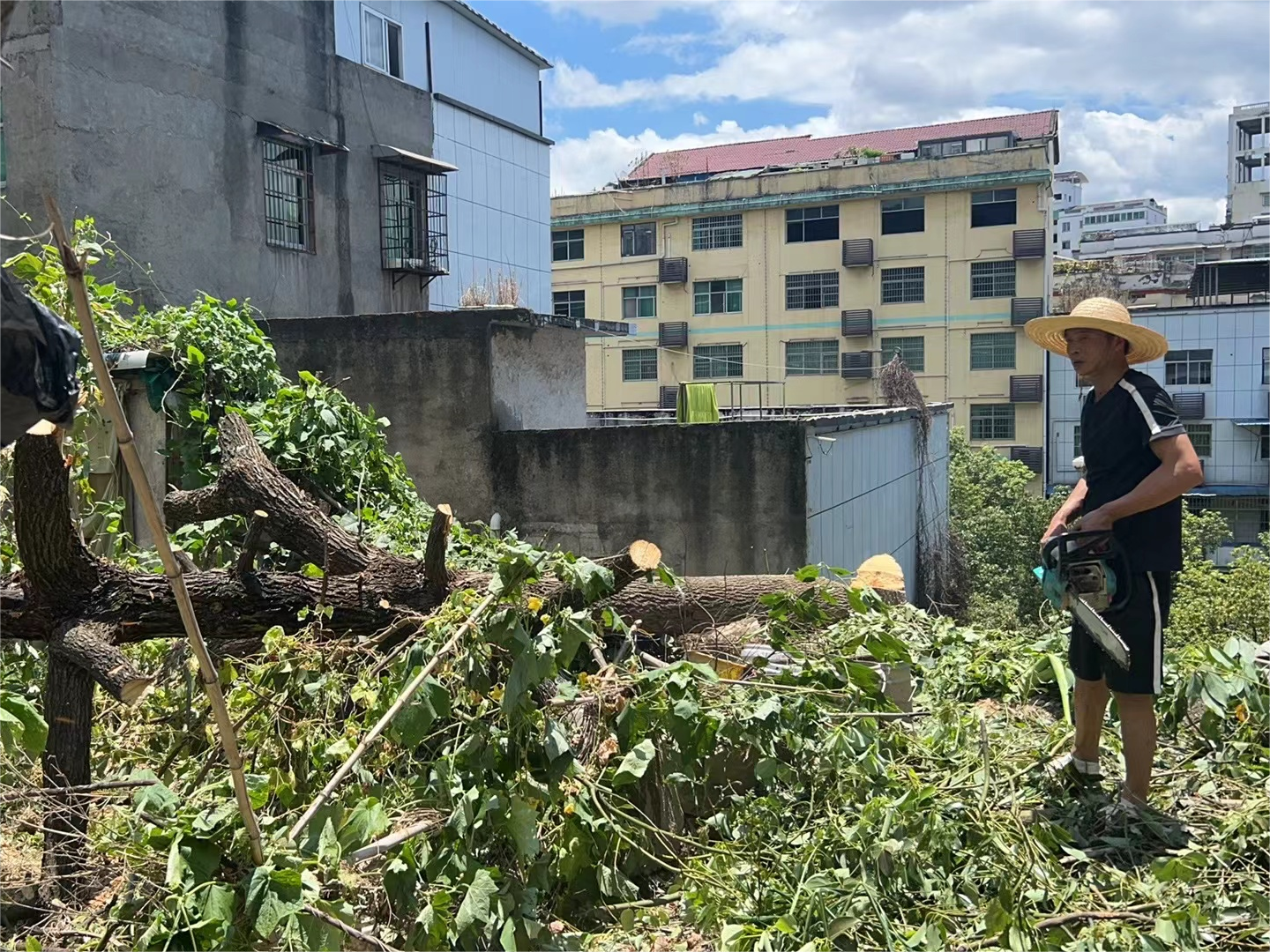 為保障人民群眾生命財(cái)產(chǎn)安全,消除安全隱患,市城建投公司在防汛期間開展安全隱患點(diǎn)排查過程中,發(fā)現(xiàn)芷江路社區(qū)位于迎豐西路842號(hào)門店背后高邊坡一棵香樟樹下土壤流失嚴(yán)重,存在傾倒風(fēng)險(xiǎn),危及房屋安全。作為該社區(qū)的后盾單位,市城建投立即派全資子公司工程建設(shè)公司專業(yè)人員現(xiàn)場(chǎng)查看,及時(shí)對(duì)接,并于7月18日上午,組織城發(fā)物業(yè)公司5名工作人員帶著安全繩、電鋸等工具到達(dá)現(xiàn)場(chǎng)開始作業(yè)。