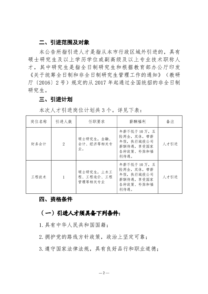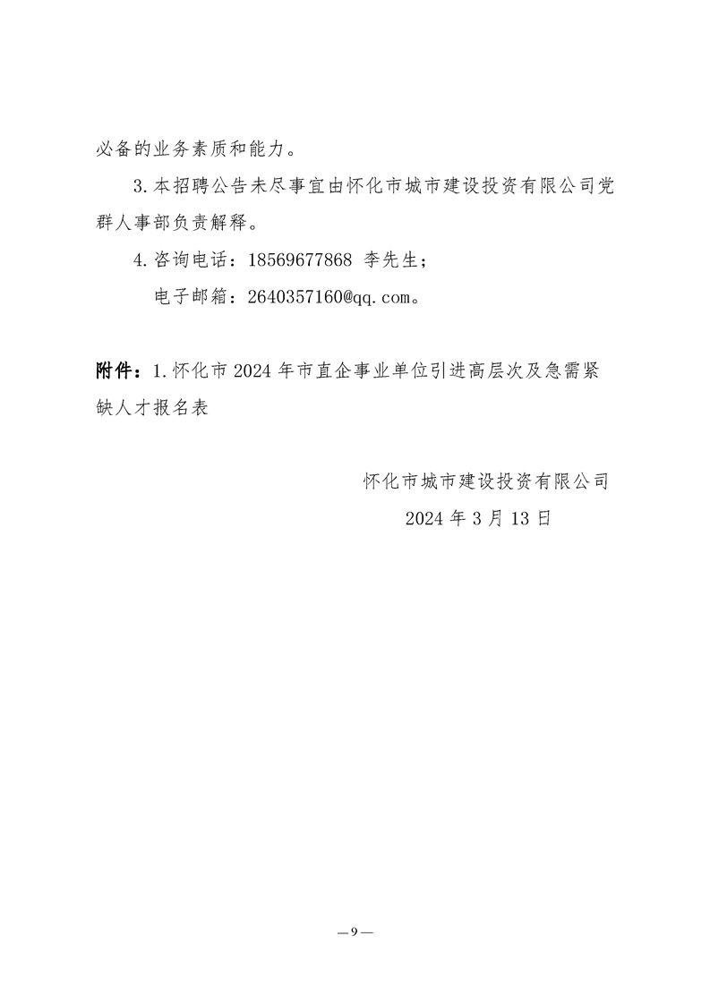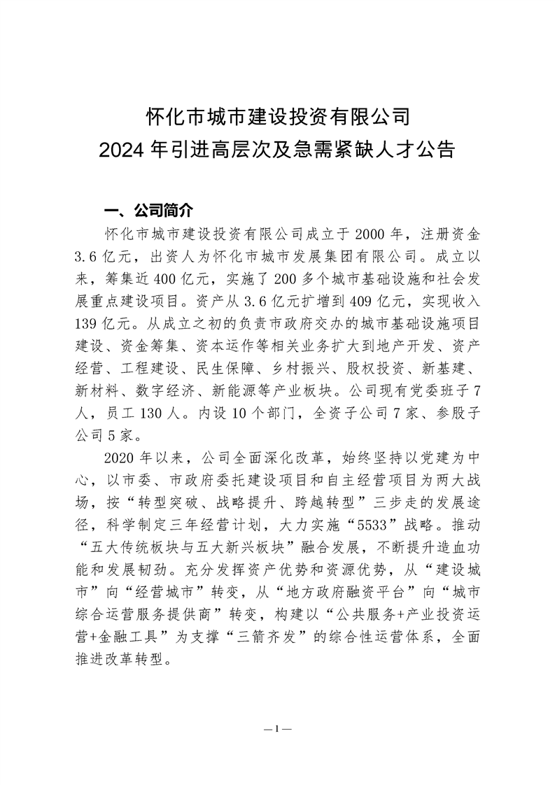 懷化市城市建設(shè)投資有限公司2024年引進(jìn)高層次及急需緊缺人才公告
