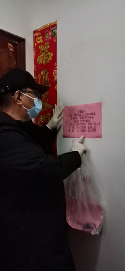 突擊隊(duì)員前往社區(qū)入戶張貼疫情防控信息