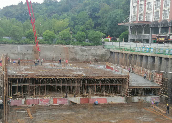 迎豐公園停車場正在澆筑南段負(fù)二層頂板砼