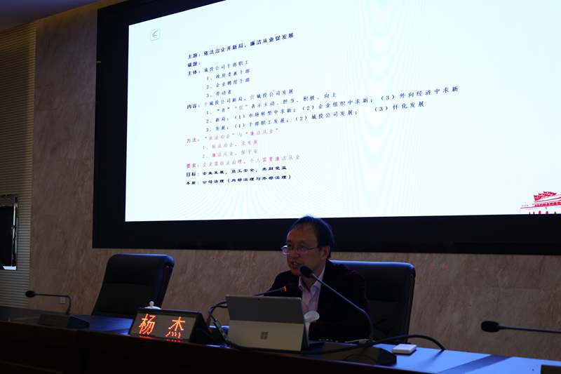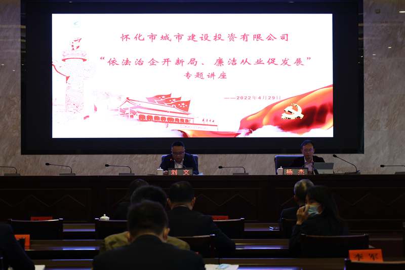 為推動(dòng)公司“清廉國企”建設(shè),加強(qiáng)依法治企能力,強(qiáng)化全員廉潔從業(yè)意識,2022年4月29日上午,懷化市城市建設(shè)投資有限公司舉辦了“依法治企開新局,廉潔從業(yè)促發(fā)展”專題教育講座,公司黨委委員、紀(jì)檢書記、監(jiān)察專員劉文主持講座。