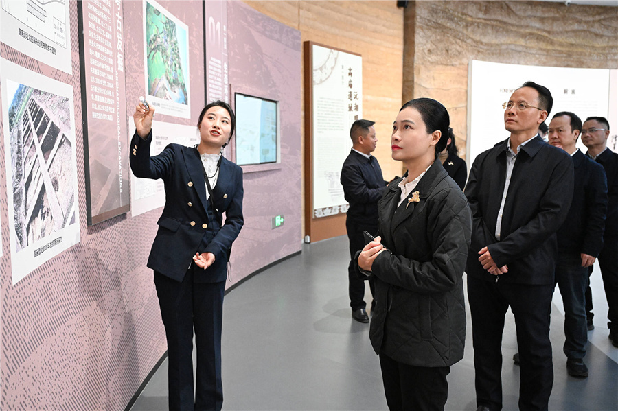 (11月24日,市委副書記、代市長韋朝暉在洪江市調(diào)研。圖為韋朝暉在高廟遺址博物館了解景區(qū)提質(zhì)改造、文物活化利用等情況。懷化日?qǐng)?bào)全媒體記者 吳濤 攝)