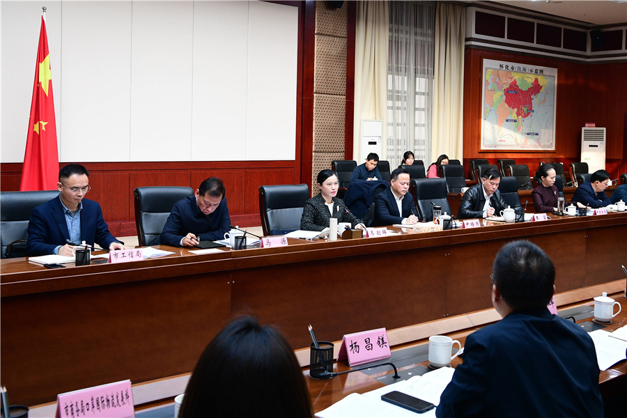 (1月12日下午,市委副書記、市長韋朝暉研究外貿(mào)進(jìn)出口和招商引資工作。懷化日報(bào)全媒體記者 潘雨 攝)