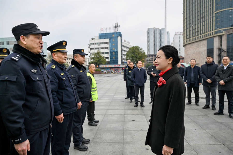 懷化火車(chē)站廣場(chǎng)周邊是節(jié)假日主城區(qū)繁忙地段之一。韋朝暉來(lái)到廣場(chǎng)執(zhí)勤點(diǎn),看望慰問(wèn)執(zhí)勤民警、城管執(zhí)法隊(duì)員和環(huán)衛(wèi)工人,感謝他們?cè)诠?jié)日期間堅(jiān)守崗位、默默奉獻(xiàn),叮囑公安部門(mén)加強(qiáng)社會(huì)面治安巡邏防控、大型活動(dòng)安全管理、人員密集場(chǎng)所安全防范;城管執(zhí)法部門(mén)堅(jiān)持文明執(zhí)法、溫情服務(wù),強(qiáng)化與街道社區(qū)聯(lián)動(dòng)配合,統(tǒng)籌做好市容環(huán)境維護(hù)、煙花爆竹管控等工作;環(huán)衛(wèi)部門(mén)切實(shí)關(guān)心關(guān)愛(ài)環(huán)衛(wèi)工人,落實(shí)好各項(xiàng)保障措施,在全社會(huì)營(yíng)造關(guān)心尊重一線(xiàn)勞動(dòng)者的濃厚氛圍。在詳細(xì)了解懷化火車(chē)站客運(yùn)流量、運(yùn)力保障等情況后,韋朝暉指出,火車(chē)站是展示城市形象的重要窗口,要科學(xué)研判客流變化,細(xì)化服務(wù)保障舉措,確保群眾平安、便捷、溫馨出行。