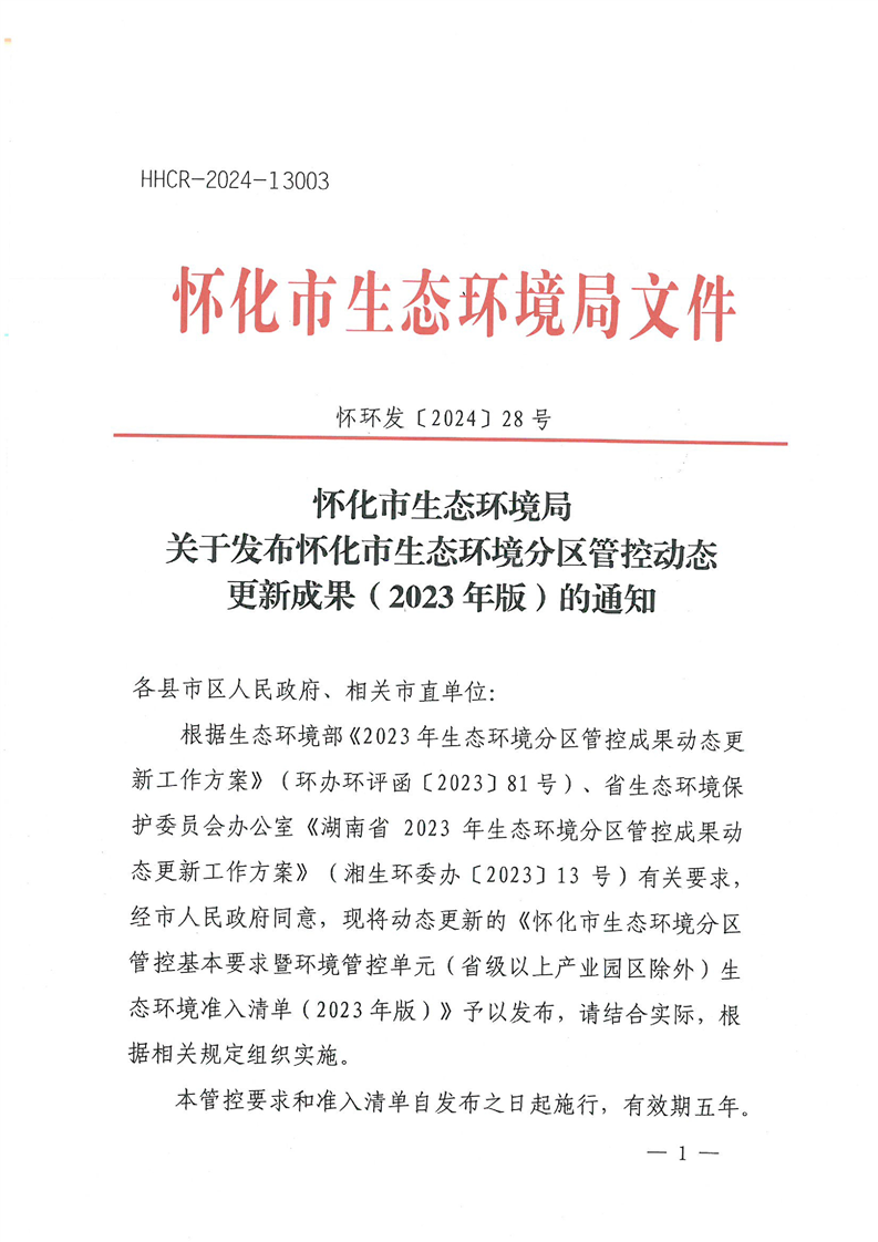 文號:懷環(huán)發(fā)〔2024〕28號