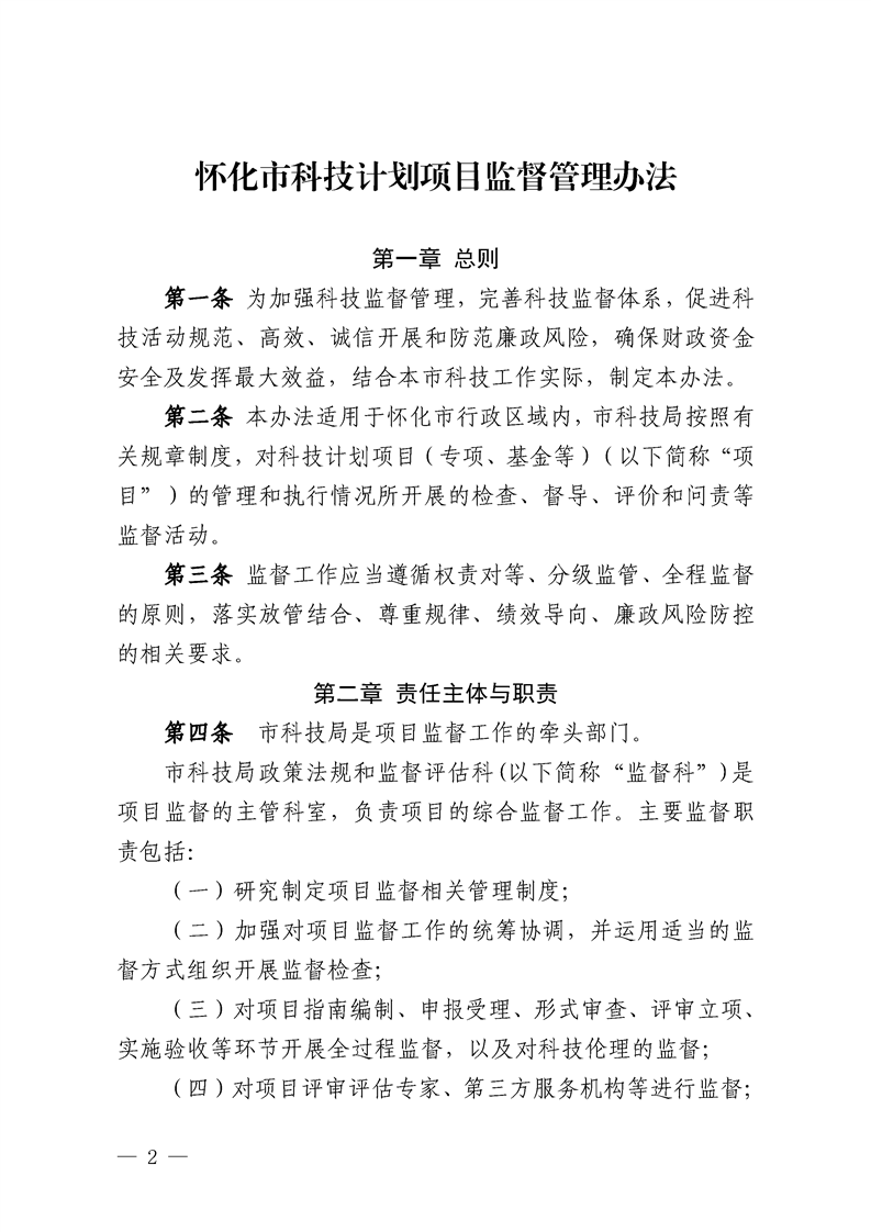 懷化市科學(xué)技術(shù)局關(guān)于印發(fā)《懷化市科技計(jì)劃項(xiàng)目監(jiān)督管理辦法》的通知