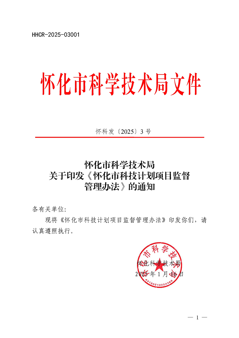 索引號:431200/2025-006706 文號:懷科發(fā)〔2025〕3號 統(tǒng)一登記號:HHCR-2025-03001