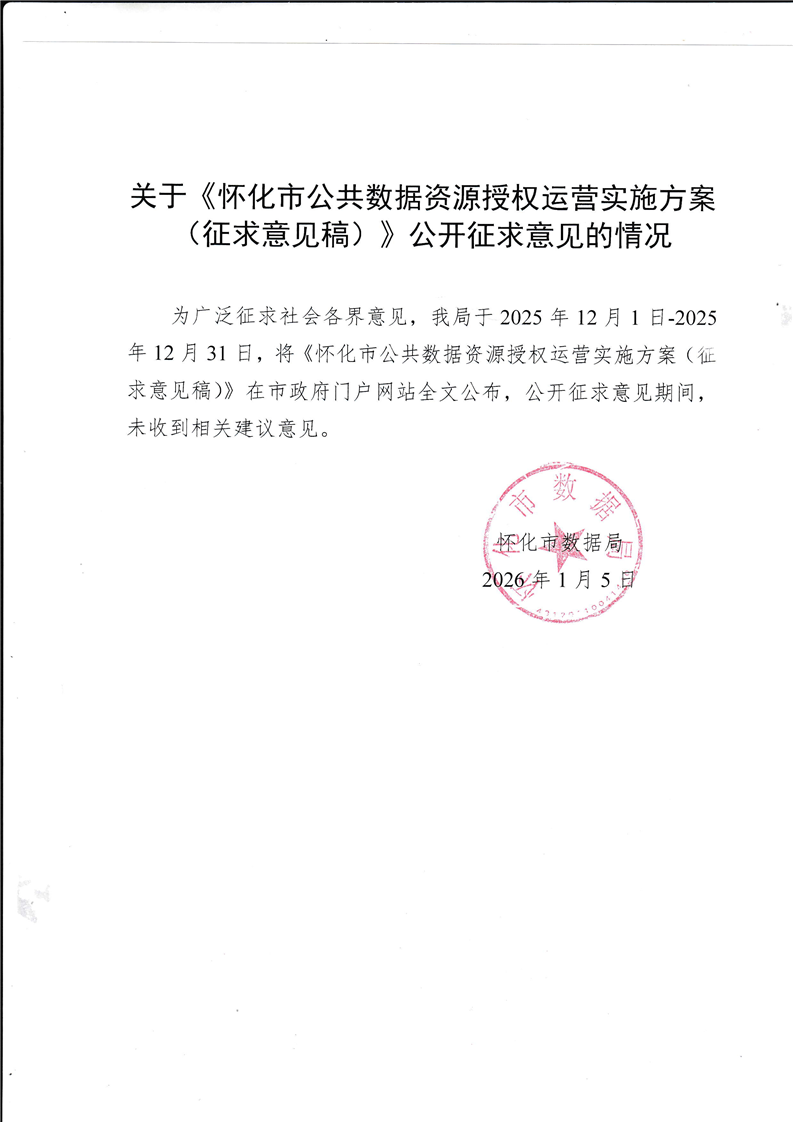 關于《懷化市公共數(shù)據(jù)資源授權運營實施方案(征求意見稿)》公開征求意見的情況