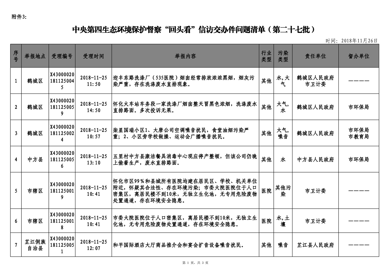 第二十七期 懷化市配合中央生態(tài)環(huán)境督察回頭看工作專報