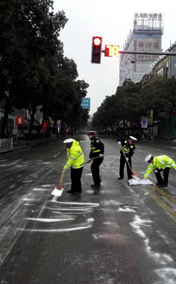 二、城區(qū):步步高路口、火車站路口、麻陽路口、城北路段、懷西高速路口通過市政部門撒鹽除冰,民警現(xiàn)場值守,交通秩序正常。環(huán)城北路往黃金坳方向出城口處上坡路段結冰嚴重,過往車輛需謹慎慢行或選擇其他線路繞行。(通訊員 李霜萍)