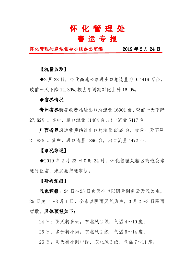 2019年懷化市高速公路春運專報(第33期)