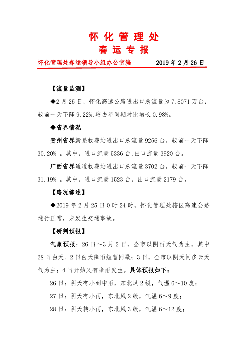 2019年懷化市高速公路春運(yùn)專(zhuān)報(bào)(第35期)