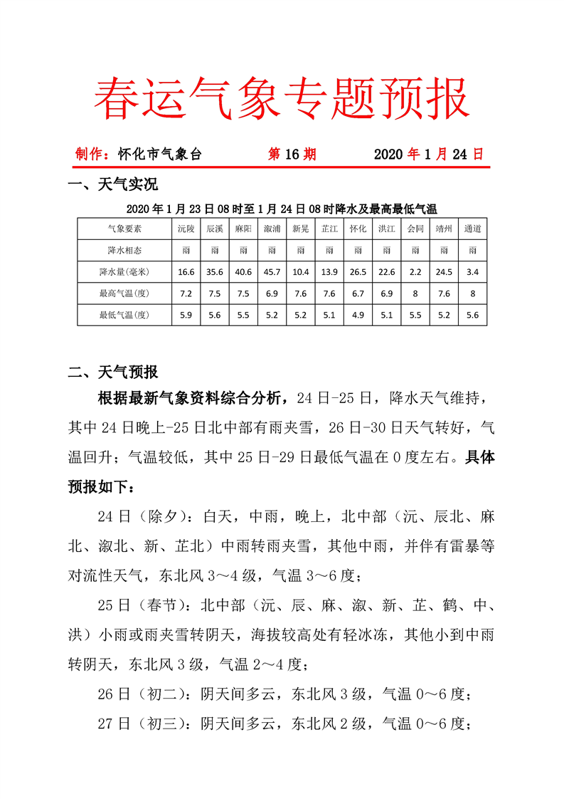 春運(yùn)氣象專題預(yù)報 第16期