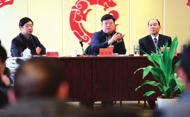 1月9日上午,市委書記張自銀與鶴城代表團一起審議。 (陸曉鵬 攝)
