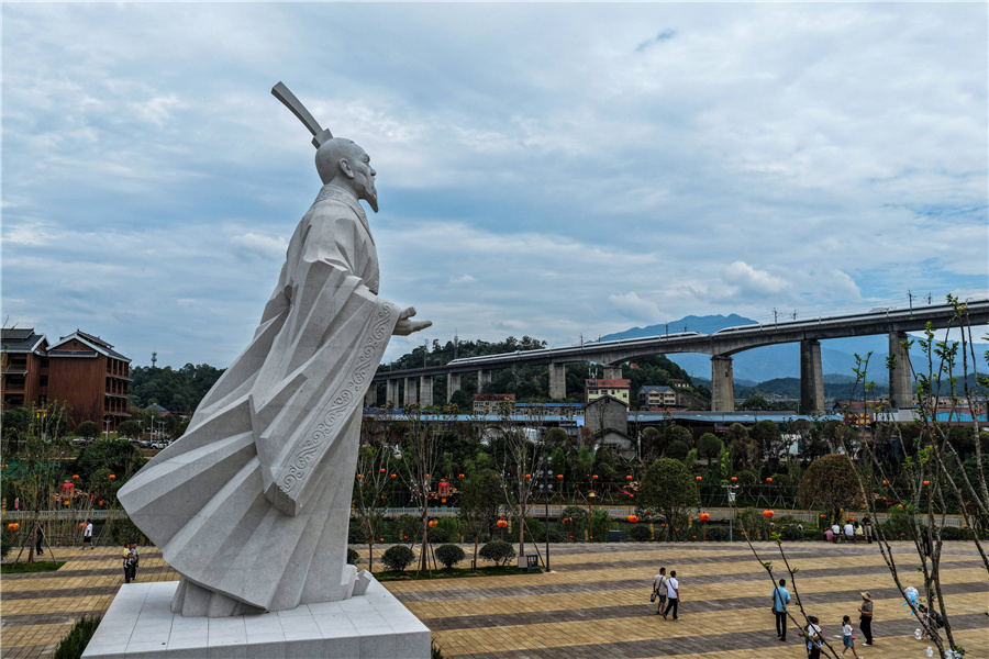 (圖為天問島上屈原雕像。懷化日報(bào)全媒體記者 潘雨 攝)
