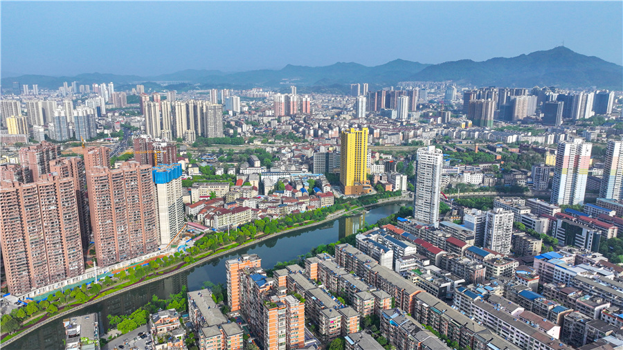 太平溪兩岸高樓錯(cuò)落,綠樹(shù)夾道,城市和自然融合共生。(懷化日?qǐng)?bào)全媒體記者 潘雨 攝)