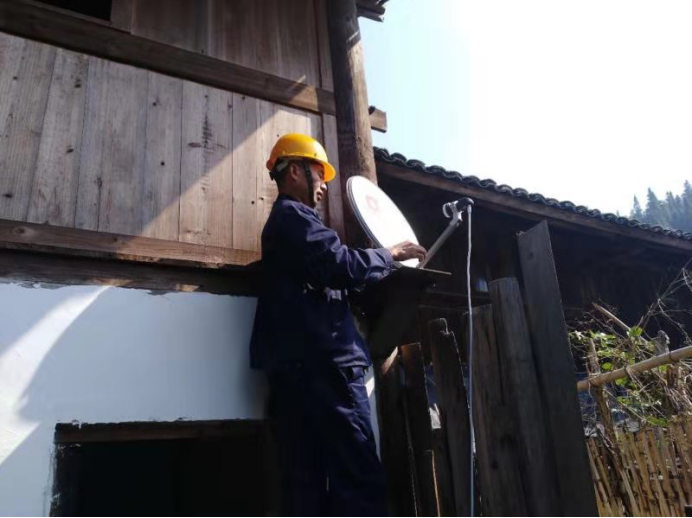 2019年11月4日通道縣電視臺(tái)陸友明臺(tái)長(zhǎng)帶領(lǐng)技術(shù)人員上門(mén)安裝戶戶通。