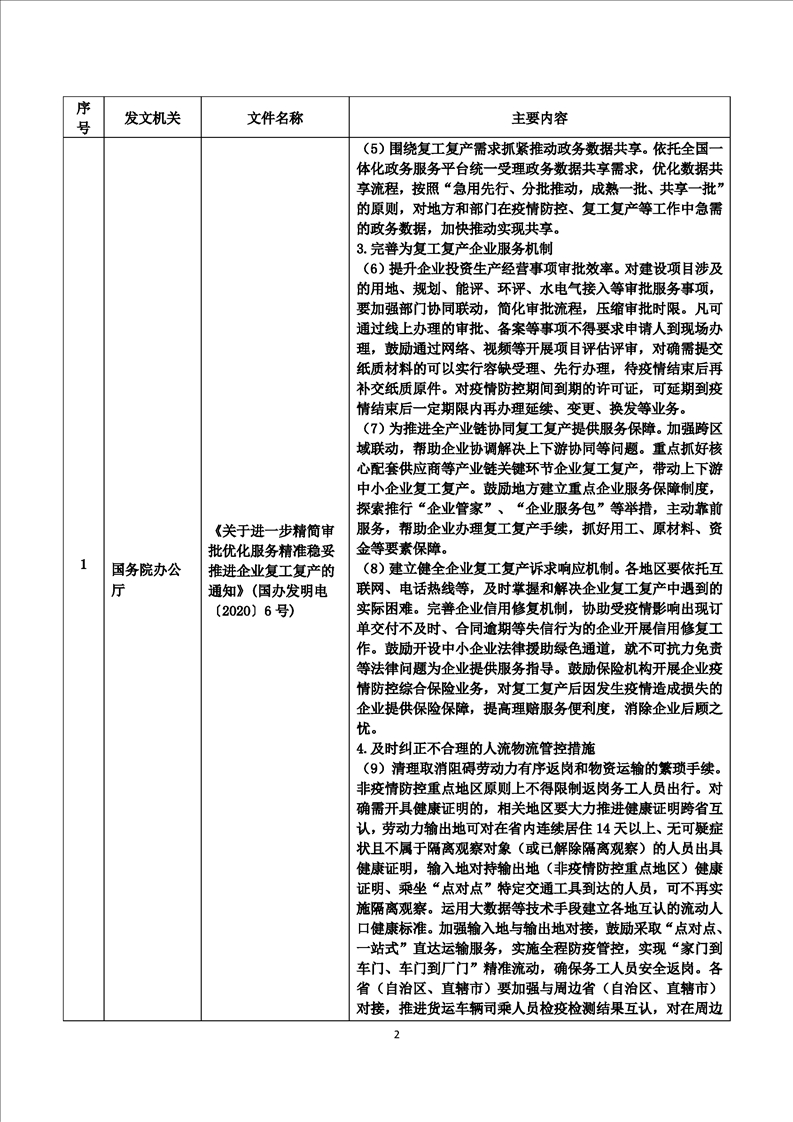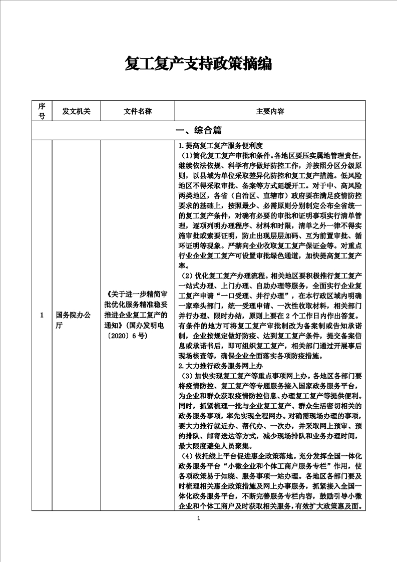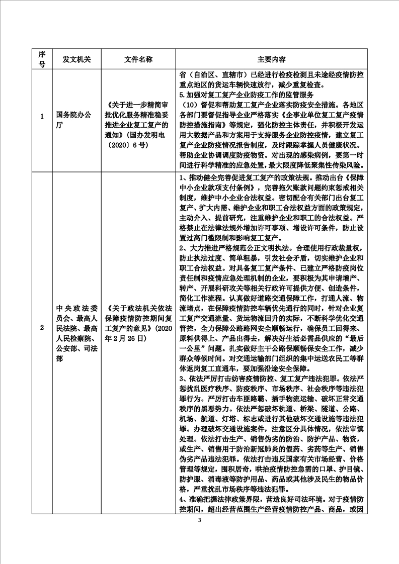 新冠肺炎疫情防控期間復工復產支持政策摘編(第3期)