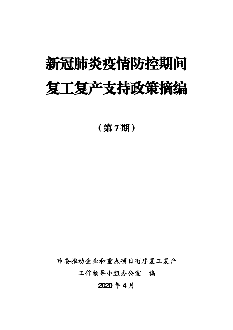 新冠肺炎疫情防控期間復工復產(chǎn)支持政策摘編(第7期)