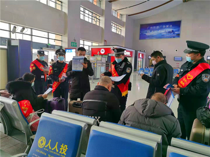 同時,宣傳民警還結(jié)合當前工作重點,在候車室、出站口、售票廳等向旅客廣泛的開展防電信網(wǎng)絡(luò)詐騙宣傳、愛車護路宣傳、疫情防控宣傳、防扒安全防范宣傳等相關(guān)知識,并給旅客發(fā)放了春運安全出行手冊,提醒旅客乘坐列車出行的需要注意的安全事項。