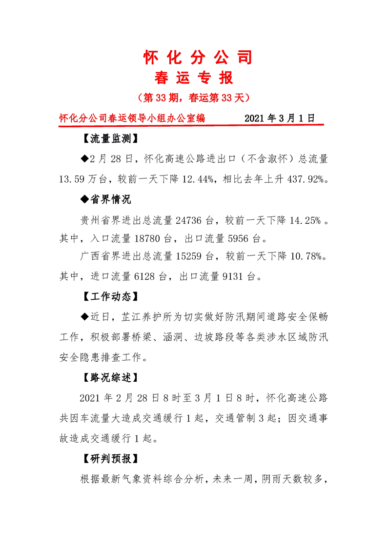 省高速集團(tuán)懷化分公司第33期春運(yùn)專報