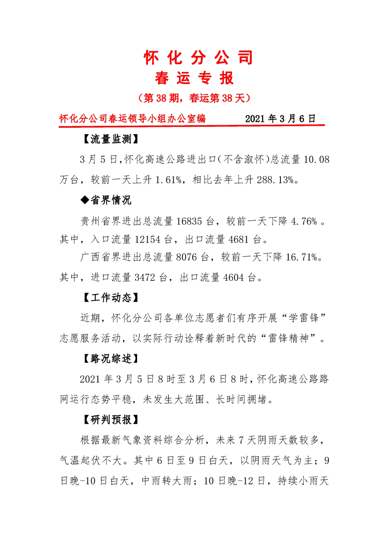 省高速集團懷化分公司第38期春運專報