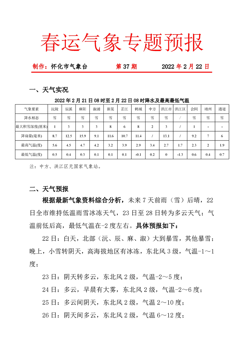 春運(yùn)氣象專題預(yù)報(bào) 第37期