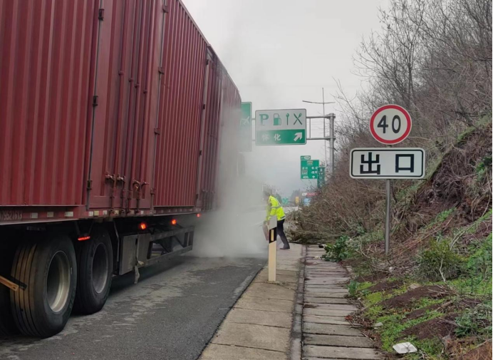 2月9日下午,湖南高速集團(tuán)懷化分公司麻陽(yáng)管理所巡查人員在巡查途中,及時(shí)發(fā)現(xiàn)并制止一輛大貨車右前輪著火冒煙仍在行駛的情況,有效避免了一起車輛自燃事故的發(fā)生,為車主挽回巨大經(jīng)濟(jì)損失。