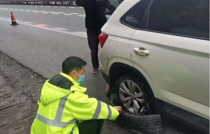 上午9時許,在G60滬昆高速公路東向西方向K1378+650M處,一輛小車因右后輪爆胎停在應急車道上。而司機沒有換胎經(jīng)驗,只能在原地干著急。所幸雪峰山管理所巡查人員在巡查過程中及時發(fā)現(xiàn),并用隨車維修工具迅速幫其換好輪胎。