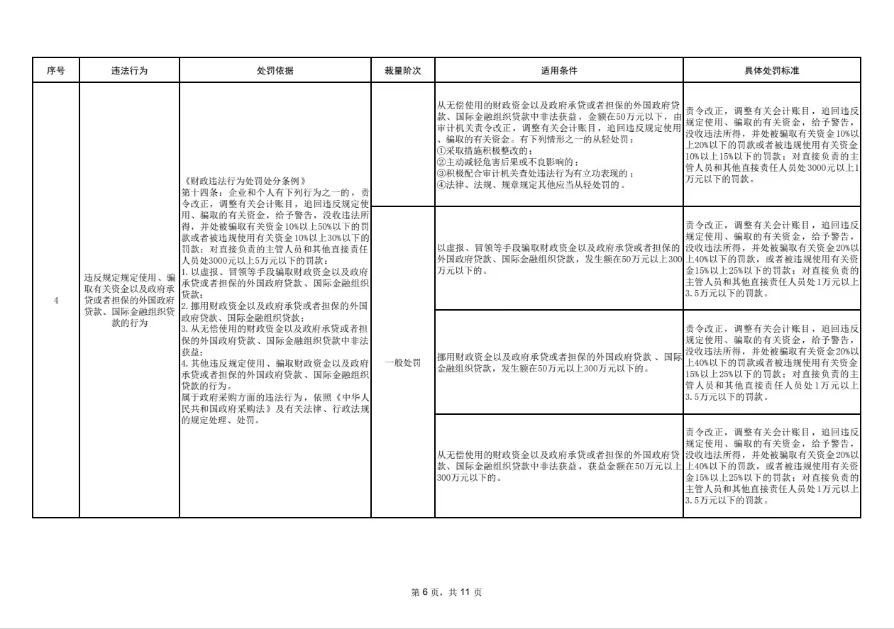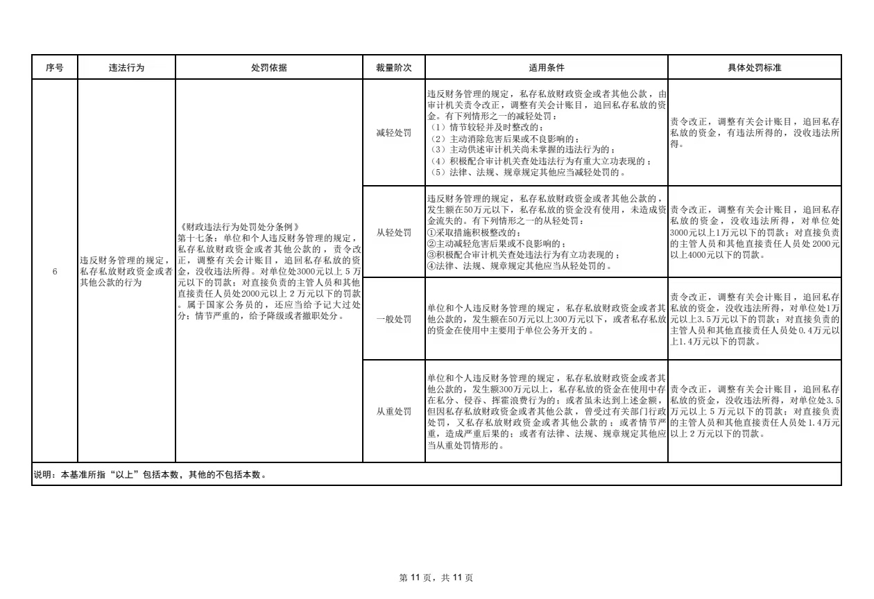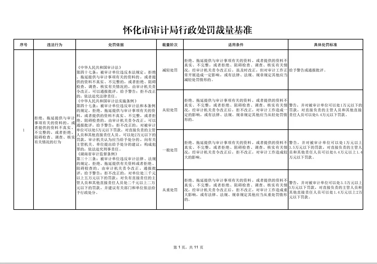 懷化市審計局行政處罰裁量基準(zhǔn)