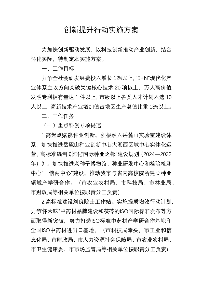 [政策]創(chuàng)新提升行動實(shí)施方案