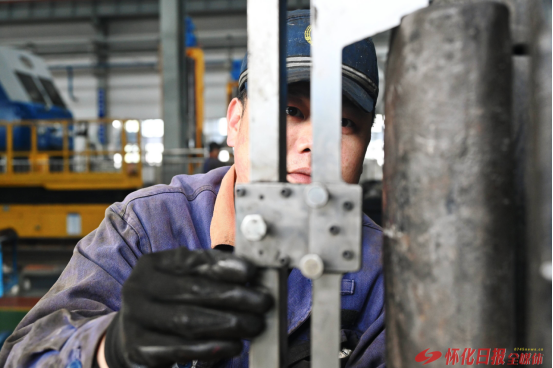 (1月13日,在懷化機務(wù)段檢修庫內(nèi),工作人員正在對HXD1型電力機車機械間受電弓氣閥板進行檢查、調(diào)試。)