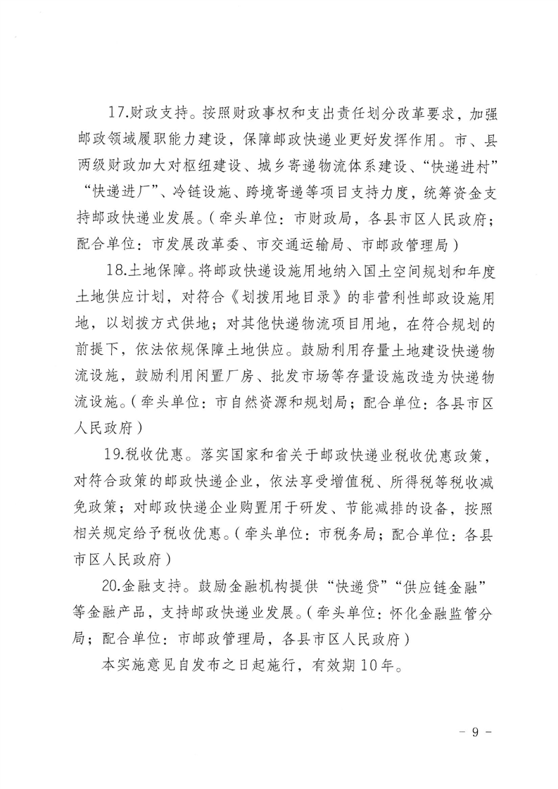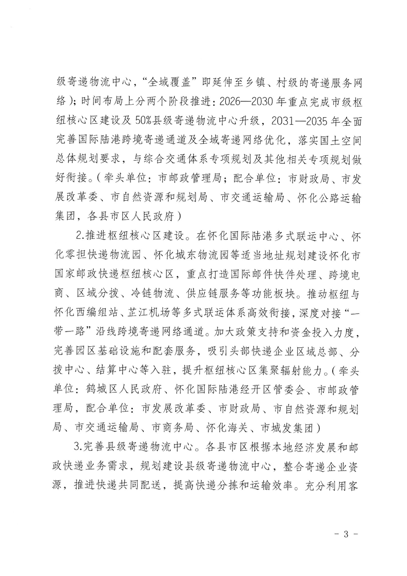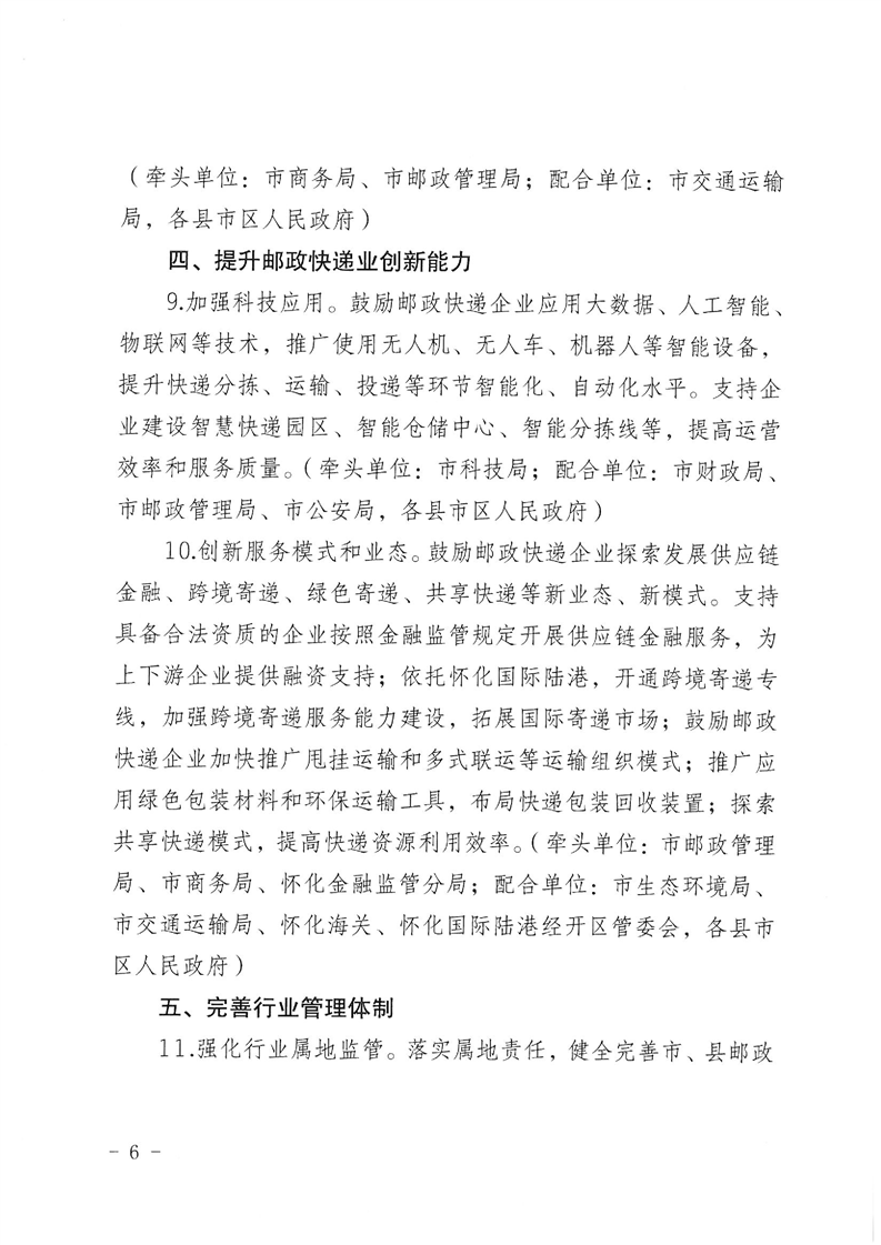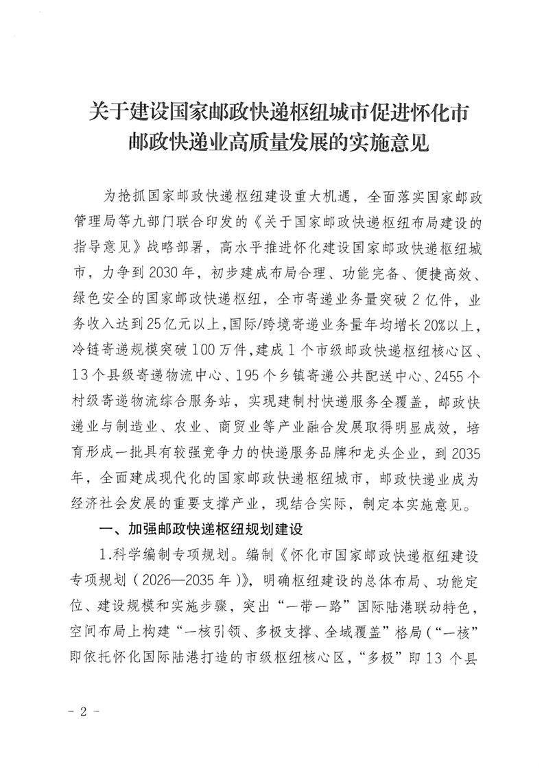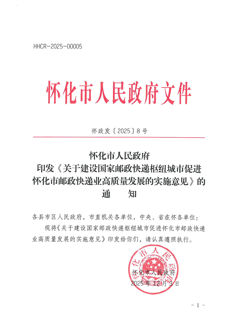 懷化市人民政府印發(fā)《關(guān)于建設(shè)國家郵政快遞樞紐城市促進(jìn)懷化市郵政快遞業(yè)高質(zhì)量發(fā)展的實(shí)施意見》的通知