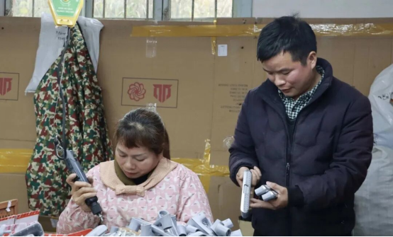 指尖輕旋,螺絲精準(zhǔn)入位;巧手拼接,配件一氣呵成……在會(huì)同縣林城鎮(zhèn)鷹嘴界村就業(yè)幫扶車間里,二十余名村民正專注組裝箱包把手,機(jī)器輕鳴與鄉(xiāng)音笑語(yǔ)交織,奏響鄉(xiāng)村增收的動(dòng)人樂(lè)章。這間由閑置校舍改造而成的車間,是湖南享同實(shí)業(yè)“總部+鄉(xiāng)村車間”模式的衛(wèi)星工廠,主要生產(chǎn)箱包把手等簡(jiǎn)易配件,企業(yè)統(tǒng)一供料、全程技術(shù)指導(dǎo)、保底回收產(chǎn)品,實(shí)行計(jì)件薪酬,精準(zhǔn)吸納脫貧戶、留守婦女、弱勞動(dòng)力等就業(yè)困難群體就近上崗。