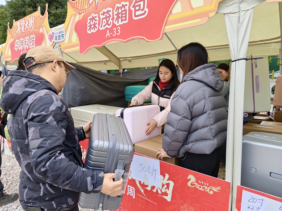 “我們是懷化本土的箱包企業(yè),這也是我們第一次參加年貨節(jié)?!焙先A煒科技有限公司馮品瑜介紹,本次帶來(lái)了多款流行的行李箱,并以成本價(jià)出售,“在商場(chǎng)里要上千元的箱子,在這里只要兩三百元就能買到。”